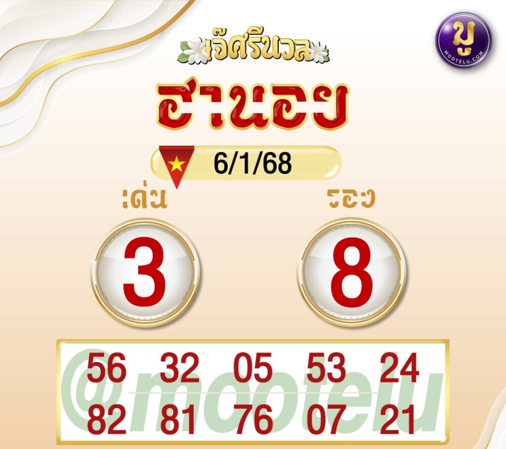 - เจ๊ศรีนวล: เด่น 3 รอง 8 พร้อมเลขสองตัว 56, 32, 53