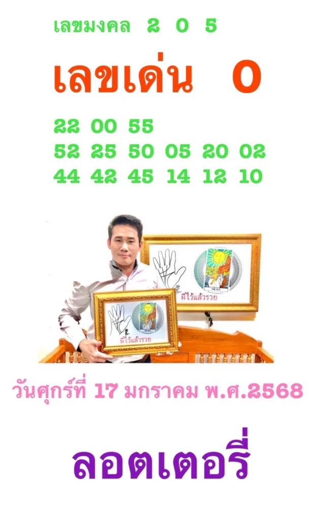 - เลขมงคลเด่น: 2, 0, 5