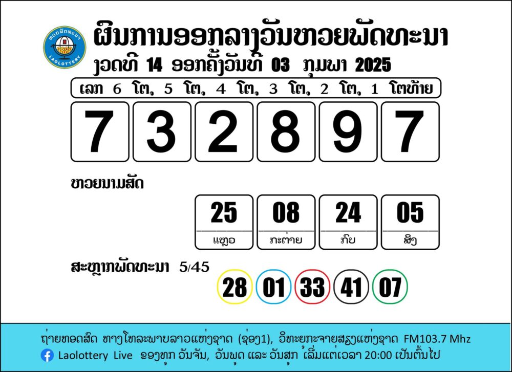 ຖ່າຍທອດສົດການອອກເລກລາງວັນຫວຍພັດທະນາ 3/2/2025