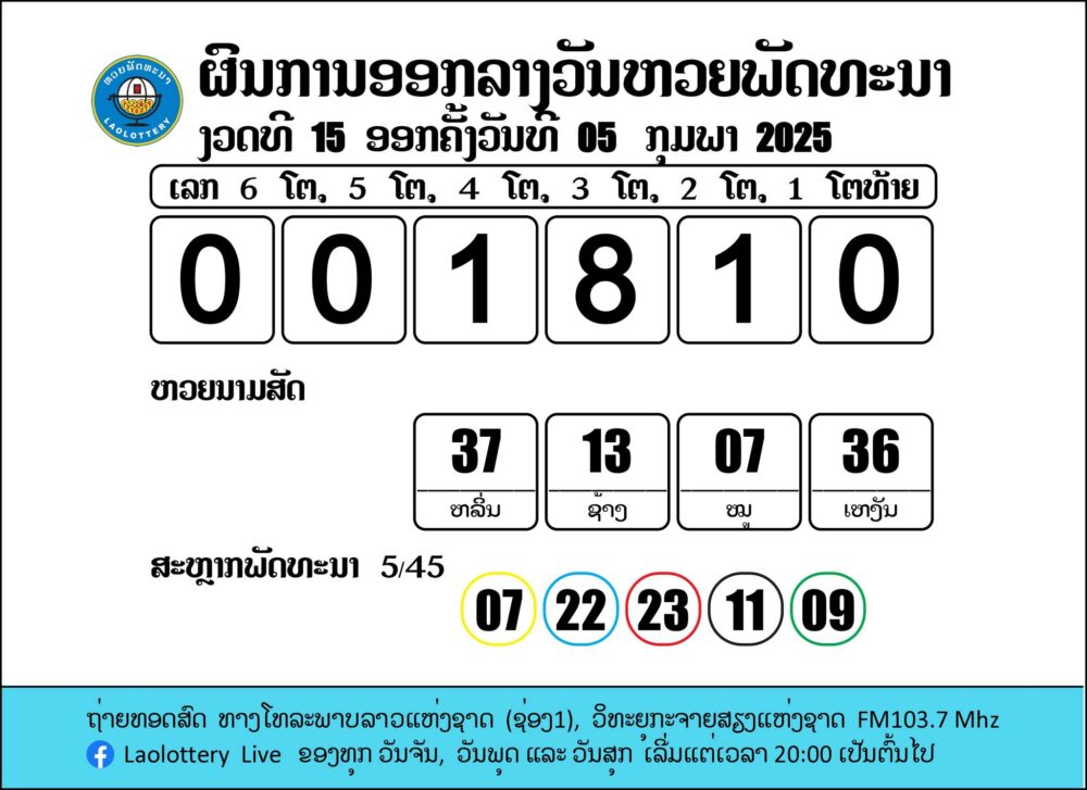 ຖ່າຍທອດສົດການອອກເລກລາງວັນຫວຍພັດທະນາ 5/2/2025