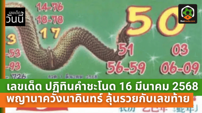 เลขเด็ด ปฏิทินคำชะโนด 16 มีนาคม 2568 พญานาควังนาคินทร์ ลุ้นรวยกับเลขท้ายสองตัวสุดปัง!