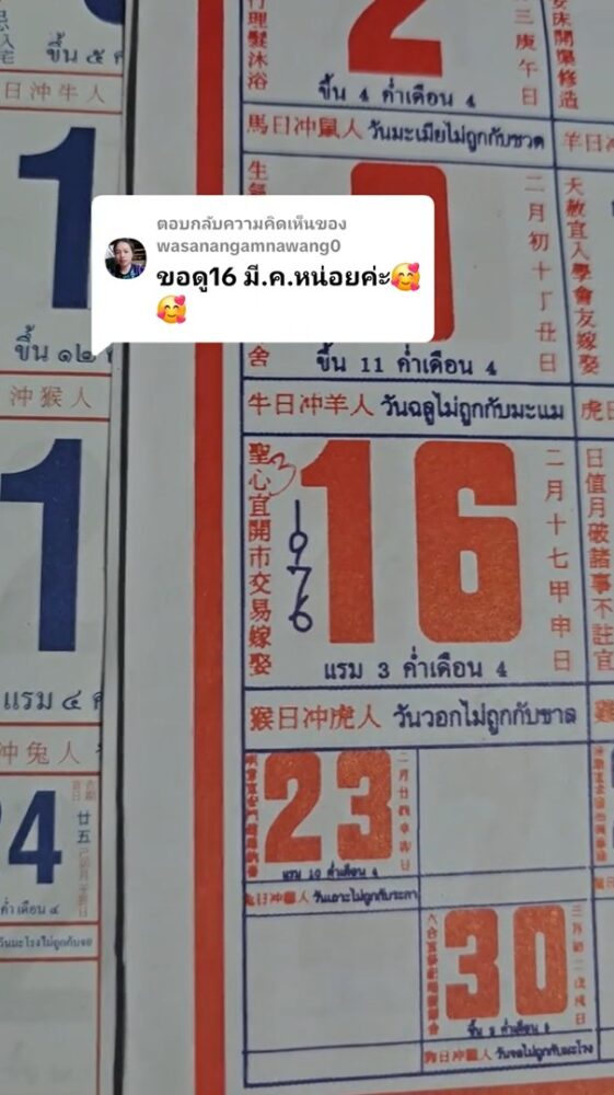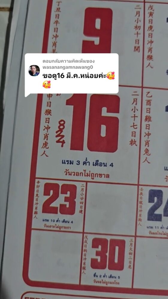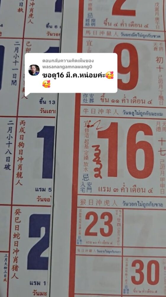 สำหรับ เลขปฏิทินจีน ในงวดนี้ 16 มีนาคม 2568 มีความพิเศษยิ่งกว่าเดิม โดยผู้ใช้แอปพลิเคชั่น TikTok บัญชี nid8857 ปทุมราชเทคนิคโซล่าเซลท์ ได้โพสต์คลิปแบ่งปันแนวทาง เลขเด็ด จากปฏิทินจีนจำนวนถึง 5 ฉบับ ซึ่งถือเป็นเรื่องที่ไม่ธรรมดา เนื่องจากปกติแล้วปฏิทินจีนมักจะให้แนวทางเพียง 4 ฉบับเท่านั้น การเพิ่มขึ้นมาอีก 1 ฉบับในครั้งนี้จึงยิ่งกระตุ้นความสนใจของนักเสี่ยงโชคเป็นอย่างมาก