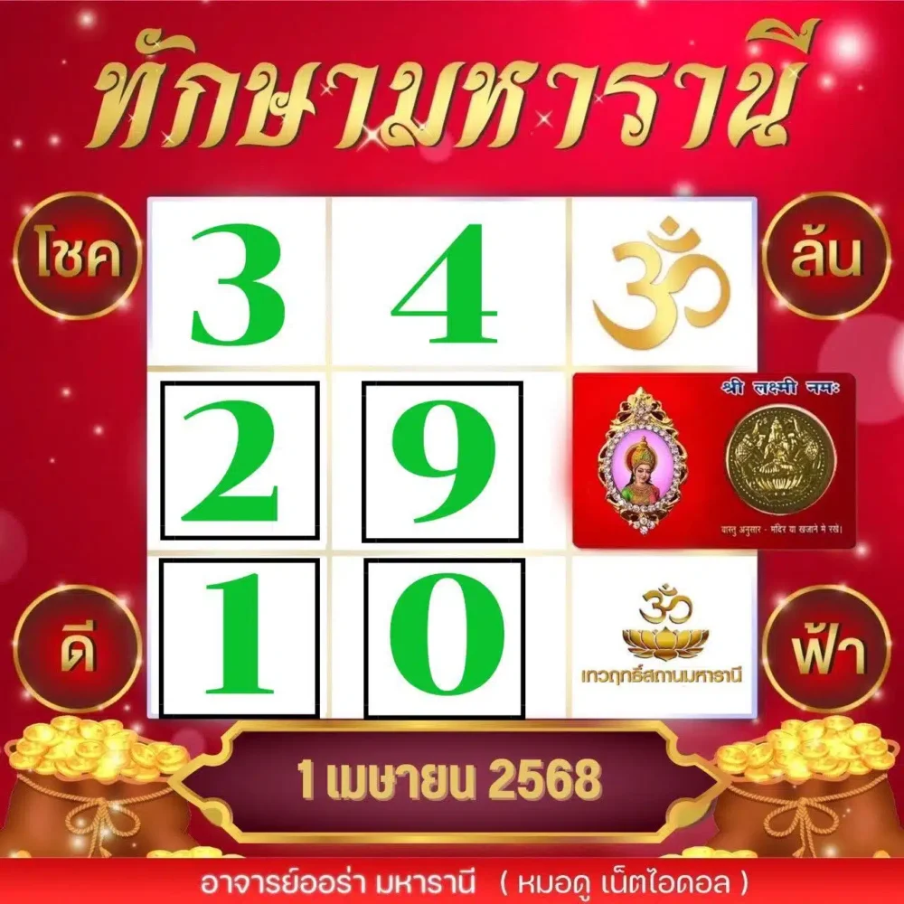 สำหรับเลขใน ตารางทักษามหารานี งวด 1 เม.ย. 68 มีดังนี้