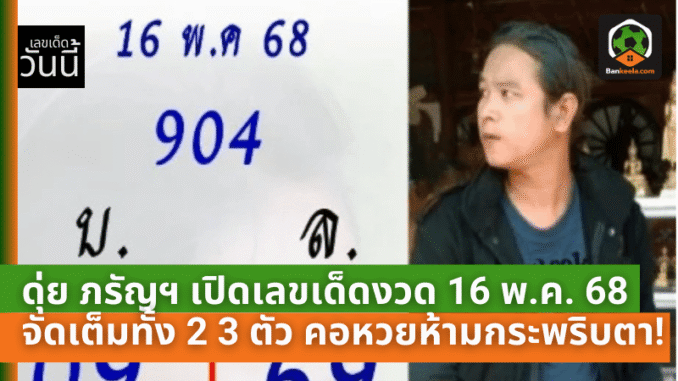 เลขเด็ดดุ่ย ภรัญฯ งวดนี้ 16/5/68 ประกอบด้วย