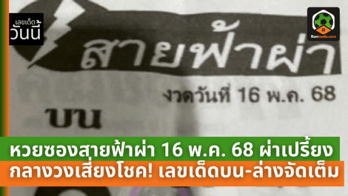 คอหวยที่เฝ้ารอแนวทางสุดแม่น งวดนี้ห้ามพลาดเด็ดขาด! “หวยซองสายฟ้าผ่า” สำนักดังที่ขึ้นชื่อเรื่องความแม่นระดับสายฟ้าฟาด ปล่อยชุดตัวเลขแบบจัดหนักจัดเต็มสำหรับงวดประจำวันที่ 16 พฤษภาคม 2568 มาให้แฟน ๆ นักเสี่ยงโชคได้พิจารณากันอย่างถึงใจ ด้วย เลขเด็ด ทั้งบนและล่างที่วิเคราะห์มาอย่างรอบด้าน