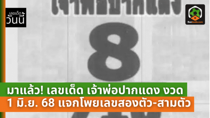 เลขเด็ด เจ้าพ่อปากแดง งวด 1 มิถุนายน 2568 มีดังนี้