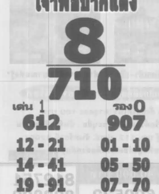 ไม่เพียงเท่านั้น เจ้าพ่อปากแดงยังจัดชุด เลขสองตัว มาให้อย่างครบถ้วน ทั้งเลขสลับหน้าหลังเพื่อให้คอหวยนำไปวิเคราะห์ต่อยอดได้อย่างจุใจ เช่น 12 – 21, 01 – 10, 14 – 41, 05 – 50, 19 – 91 และ 07 – 70 โดยเลข 710 ก็ยังถือเป็นไฮไลต์ประจำงวดนี้ที่หลายเสียงจากแวดวงนักเสี่ยงโชคจับตามองว่าอาจมาแรงแบบคาดไม่ถึงในวันประกาศผล