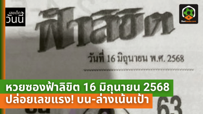 เข้าสู่ช่วงโค้งสุดท้ายก่อนการออกรางวัล สลากกินแบ่งรัฐบาล งวดวันที่ 16 มิถุนายน 2568 เหล่าคอหวยทั่วประเทศต่างเร่งตามหาเลขในดวงใจกันอย่างคึกคัก และในรอบนี้ “หวยซองฟ้าลิขิต” หนึ่งในซองหวยชื่อดังที่แฟนหวยให้การติดตามมาอย่างต่อเนื่อง ก็ไม่พลาดที่จะปล่อยแนวทางแม่นๆ ออกมาให้ลุ้นตามกันอีกครั้ง โดยเฉพาะงวดนี้ที่เลขเด่นบนและล่างมาแบบเน้นย้ำชัดเจนทุกชุด พร้อมพาไปลุยลุ้นโชคกันอย่างเต็มที่