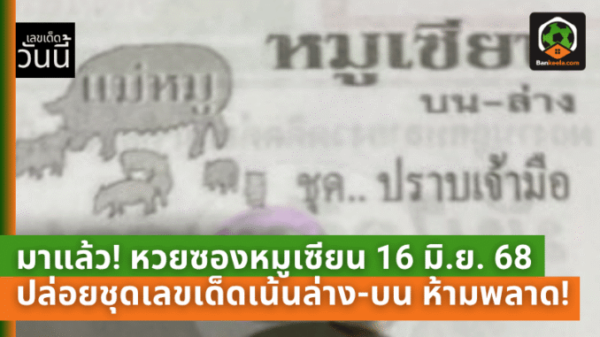 มาแล้ว! หวยซองหมูเซียน 16 มิ.ย. 68 ปล่อยชุดเลขเด็ดเน้นล่าง-บน คอหวยห้ามพลาด!