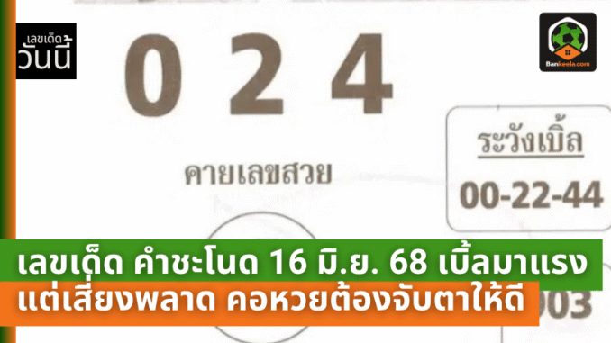 เปิดโพยศักดิ์สิทธิ์! เลขเด็ด คำชะโนด 16 มิ.ย. 68 ลุ้นโชคงวดนี้ เบิ้ลมาแรงแต่เสี่ยงพลาด คอหวยต้องจับตาให้ดี