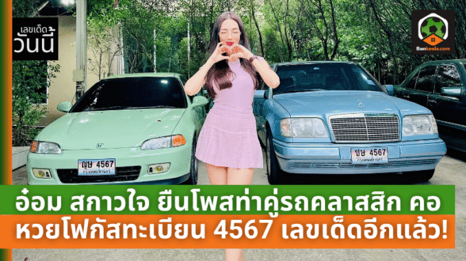 อ๋อม สกาวใจ ยืนโพสท่าคู่รถคลาสสิก คอหวยโฟกัสทะเบียน 4567 เลขเด็ดมาแรงอีกแล้ว!