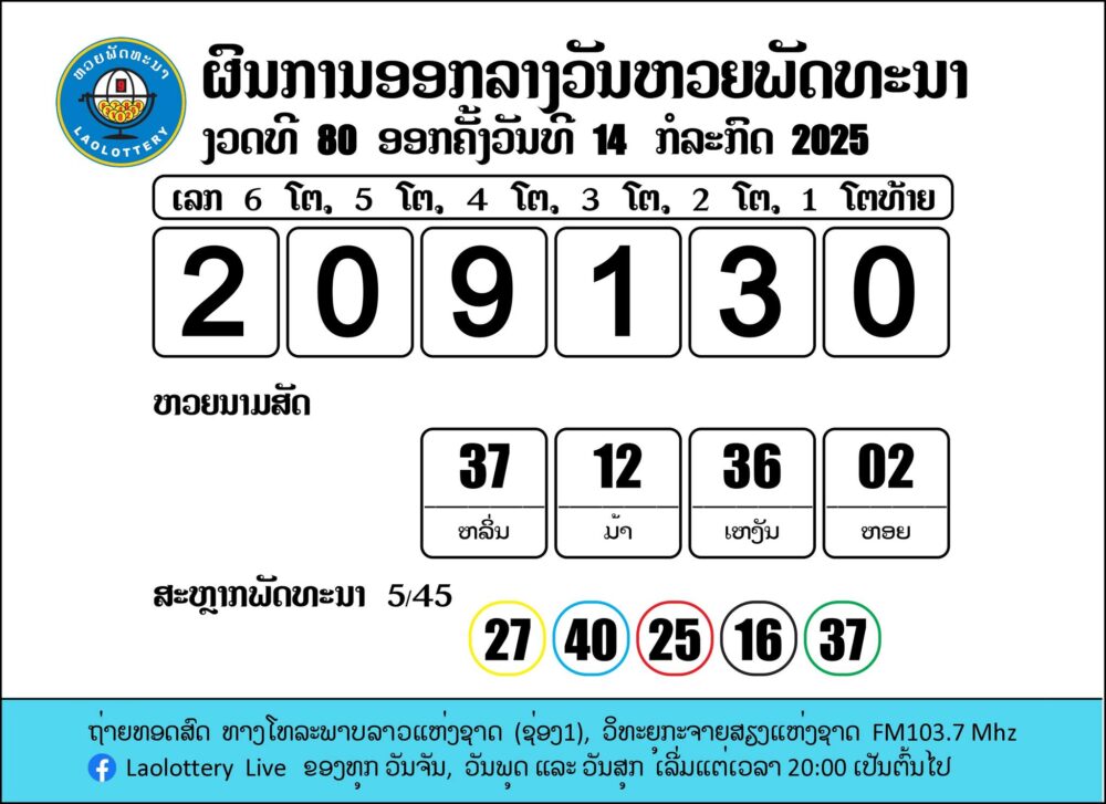 ຖ່າຍທອດສົດການອອກເລກລາງວັນຫວຍພັດທະນາ 14/07/2568