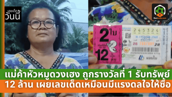 เรื่องราวโชคดีกลางเดือนกรกฎาคมนี้ ต้องยกให้แม่ค้าหัวหมูจากศรีสัชนาลัยที่กลายเป็นเศรษฐีใหม่ในพริบตา หลังคว้ารางวัลใหญ่จากสลากกินแบ่งรัฐบาลงวด 16 ก.ค. 68 รับเต็มๆ 12 ล้านบาท เธอเปิดใจทั้งน้ำตาว่ารู้สึกเหมือนมีอะไรสักอย่างดลใจให้ซื้อเลข 24 และยังยืนยันเสียงแข็งว่าจะขอเดินหน้าขายหัวหมูต่อไปเพราะเป็นอาชีพที่รักมาตลอด