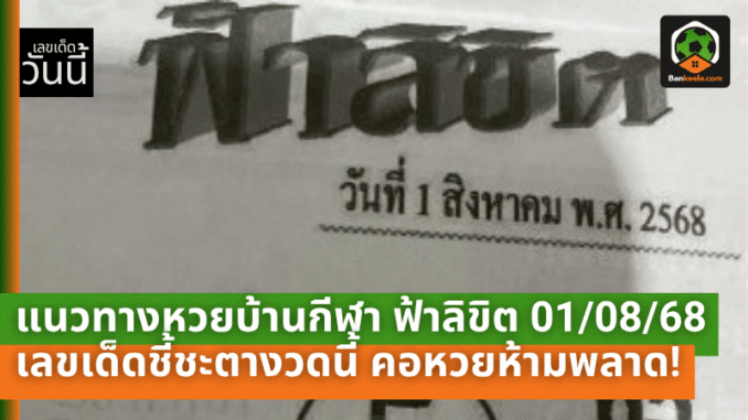 แนวทางหวยบ้านกีฬา ฟ้าลิขิต 01/08/68