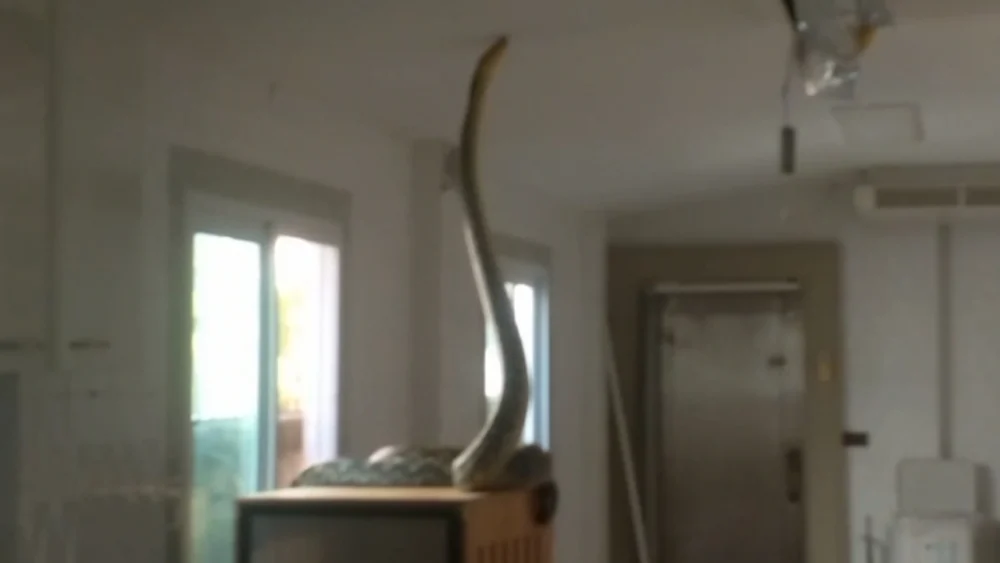 เมื่อเจ้าหน้าที่ถึงบ้านเป้าหมาย ซึ่งเป็นบ้านเดี่ยว 2 ชั้น ได้เข้าตรวจสอบยังห้องด้านหลังบ้านซึ่งใช้สำหรับเลี้ยงแมว ก็พบกับ งูเหลือมตัวใหญ่ ความยาวประมาณ 5 เมตร ขดตัวอยู่ด้านบนของตู้เก็บของภายในห้อง โดยคาดว่าเจ้างูตัวนี้น่าจะ ร่วงลงมาจากฝ้าเพดาน ที่มีช่องขนาดใหญ่พอสมควร เนื่องจากบ้านหลังนี้กำลังอยู่ระหว่างปรับปรุง และฝ้าเพดานบางจุดยังเปิดโล่ง