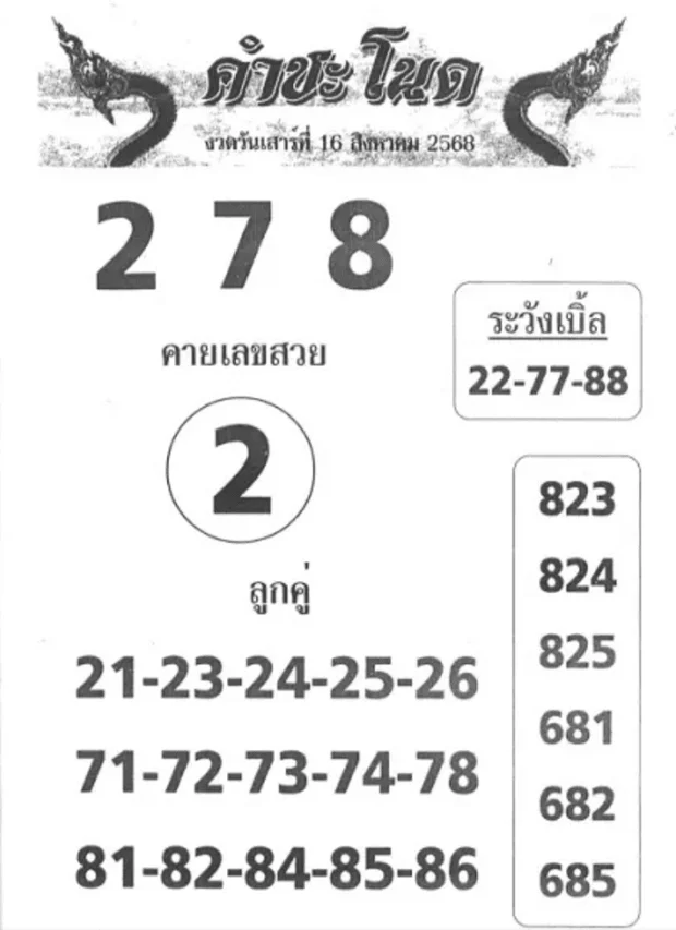เลขเด็ดคำชะโนด 16/8/68 – ฟันธงชัด! เลขเด่นเน้นๆ