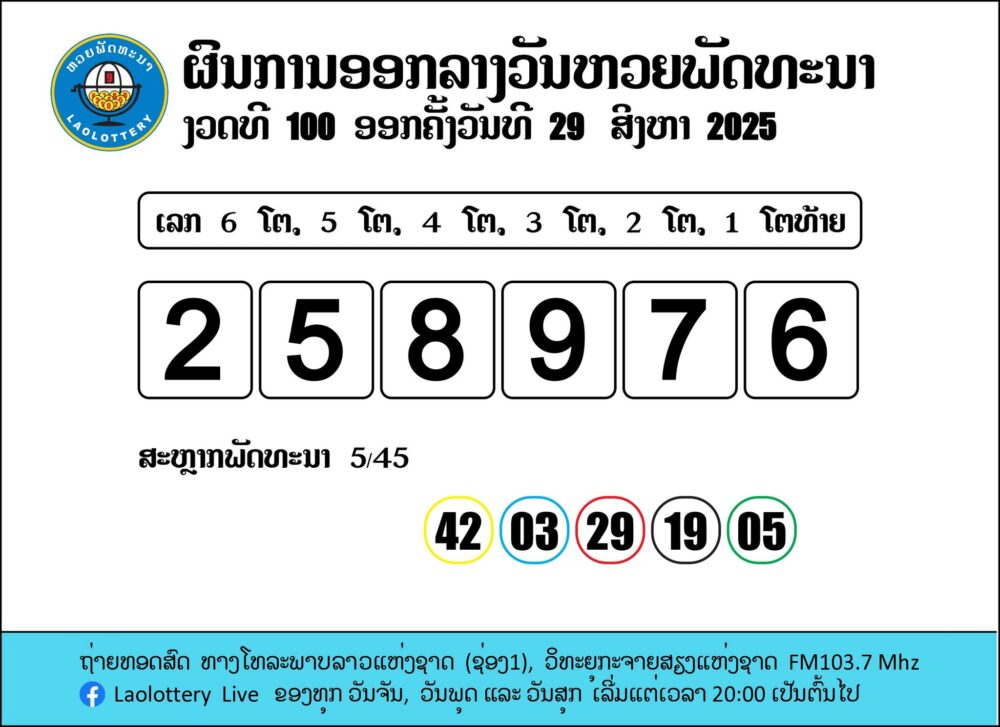 ตรวจหวยลาววันนี้ งวดประจำวันศุกร์ที่ 29 สิงหาคม 2568