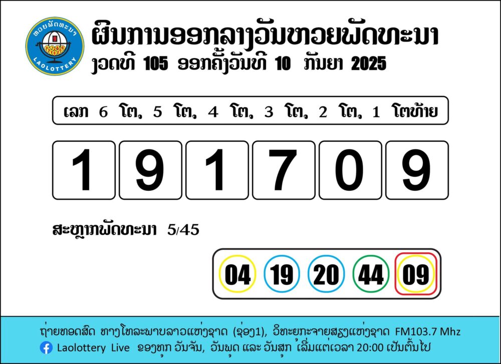 ตรวจหวยลาววันนี้ งวดประจำวันพุธที่ 10 กันยายน 2568