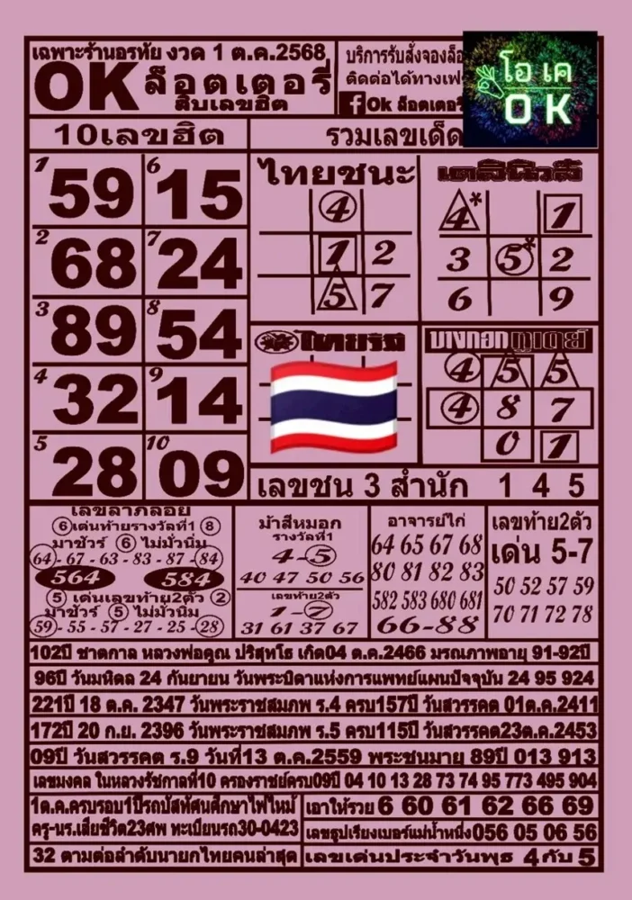 10 เลขเด็ด “OK ล็อตเตอรี่” งวด 1 ตุลาคม 2568 รีบส่องก่อนลอตเตอรี่เกลี้ยงแผง!