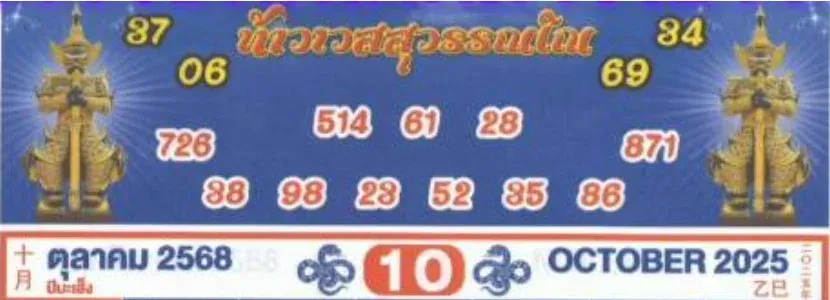 แนวทางหวยจากปฏิทินท้าวเวสสุวรรณโณ งวดวันที่ 1 ตุลาคม 2568