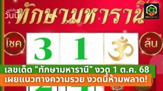 สำหรับงวดวันที่ 1 ตุลาคม 68 นี้ เลขเด่นจากตาราง ทักษามหารานี มีดังนี้