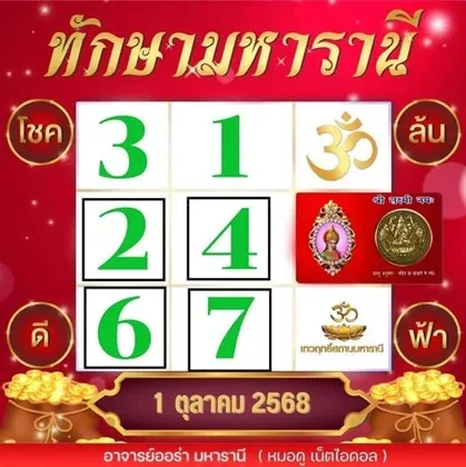 ใกล้ถึงโค้งสุดท้ายก่อนวันหวยออกอีกครั้งสำหรับ งวดวันที่ 1 ตุลาคม 2568 เหล่าคอหวยทั่วประเทศต่างเร่งตามหา เลขเด็ด จากสำนักดัง เพื่อเตรียมลุ้นโชคใหญ่ให้ทันเวลา ซึ่งแน่นอนว่าอีกหนึ่งสำนักที่แฟนหวยจับตาไม่พลาดคือ “ทักษามหารานี” จาก อาจารย์ออร่า มหารานี หมอดูเน็ตไอดอลชื่อดังที่เคยพาแฟนคลับถูกรางวัลแบบตรงเป๊ะมาแล้วหลายงวด และงวดนี้เจ้าตัวก็ไม่ปล่อยให้รอนาน ออกมาเผย แนวทางหวย แบบจัดเต็มให้แฟนๆ ได้นำไปเสี่ยงโชคกันอย่างครบชุด
