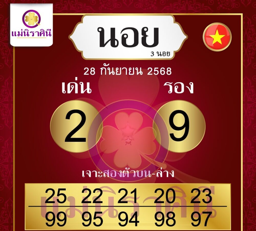 | เลขสองตัว | 21 – 25 – 29 – 41 – 46 – 47 – 57 – 68 – 93 – 95 |