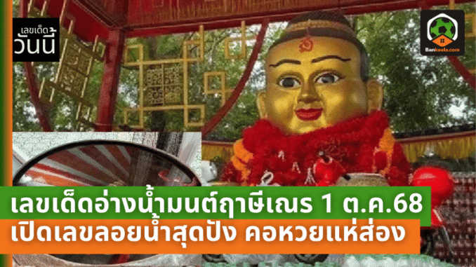 ในงวดนี้ 1 ตุลาคม 68 “ฤาษีเณร ธาตุพุทธคุณ” ได้ประกอบพิธีขอพรและทำพิธีจรดน้ำมนต์ตามแบบโบราณ ปรากฏว่าในอ่างน้ำมนต์ปรากฏตัวเลขลอยเด่นชัดหลายตัว ซึ่งเหล่าคอหวยตีเลขกันออกมาเป็นชุด เลขท้าย 2 ตัว สวยๆ น่าลุ้นสุดๆ โดยเลขที่ลอยในอ่างประกอบด้วย 8 – 7 – 5 – 3 – 0 – 9 – 6 ซึ่งเป็นตัวเลขที่มีพลังแรงมากในงวดนี้ และเชื่อกันว่าเป็น “เลขมงคลนำโชค” ที่ควรเก็บไว้พิจารณาอย่างยิ่ง