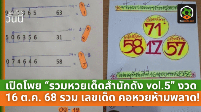 งวดนี้ “รวมหวยเด็ดสำนักดัง vol.5” จัดเต็มแนวทางให้ครบถ้วน ทั้ง เลขเด็ด ที่คำนวณจากสถิติย้อนหลัง และสูตรเฉพาะประจำสำนัก สำหรับใครที่ชื่นชอบเลขแม่น แนวทางคม วิเคราะห์ละเอียด และมั่นใจในความแม่นยำ ต้องรีบตามดู เพราะเลขชุดนี้มีลุ้นเป็นทีเด็ดของงวดนี้แน่นอน