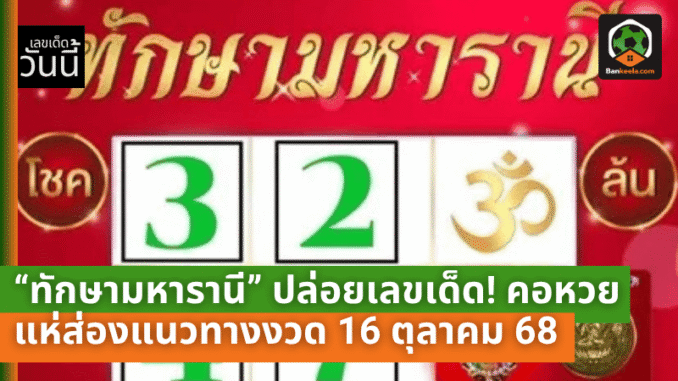 “ทักษามหารานี” ปล่อยเลขเด็ดแรง! คอหวยแห่ส่องแนวทางงวด 16 ตุลาคม 68 ลุ้นรวยกันทั่วประเทศ