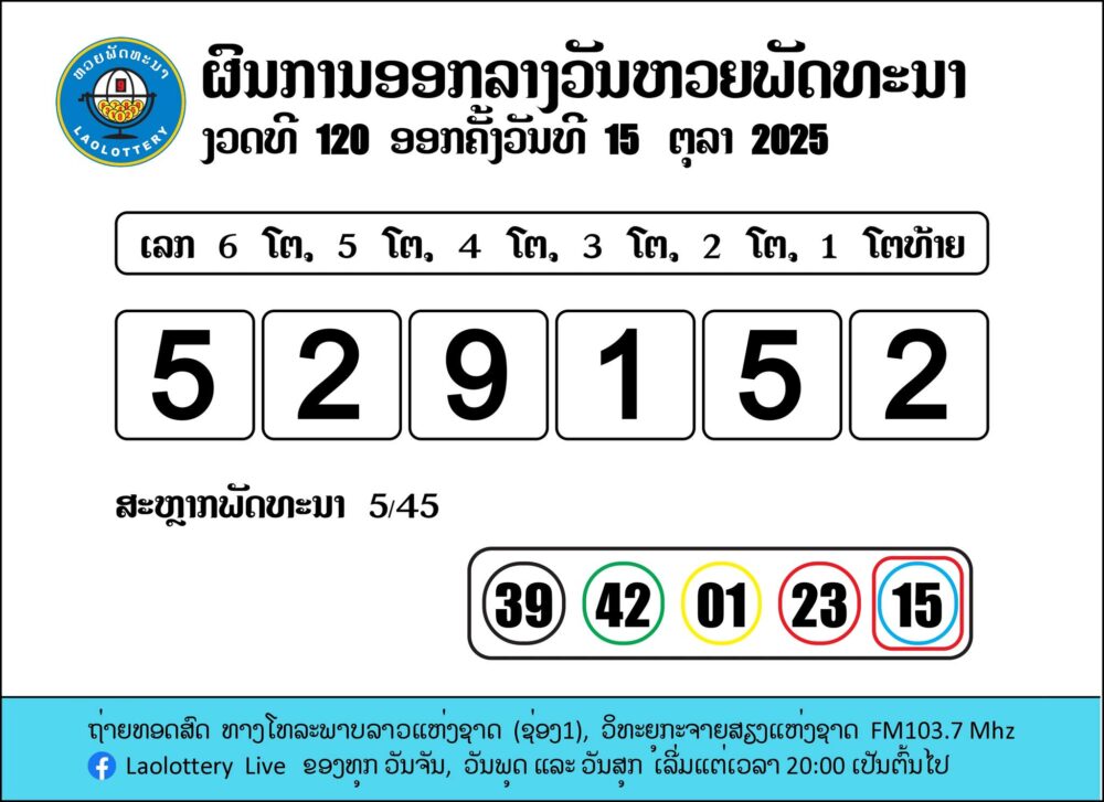ดูถ่ายทอดสด หวยลาววันนี้ ຫວຍລາວ งวด 15/10/2568