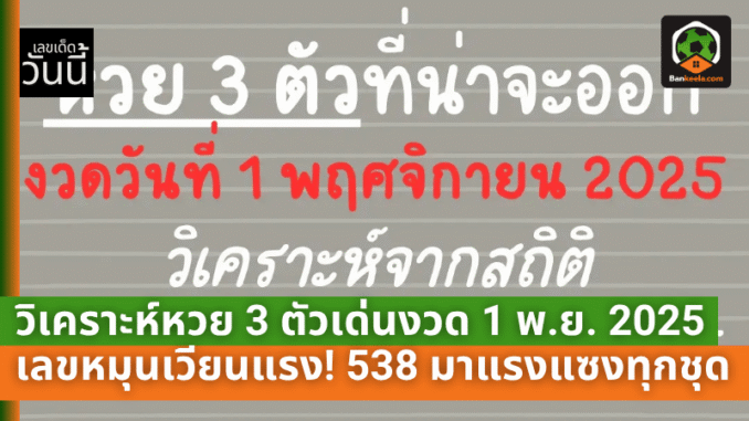 วิเคราะห์หวย 3 ตัวเด่นงวด 1 พ.ย. 2025 เลขหมุนเวียนแรง! 538 มาแรงแซงทุกชุด
