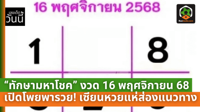 เลขเด็ด “ทักษามหาโชค” งวดวันที่ 16 พฤศจิกายน 2568 มีดังนี้: