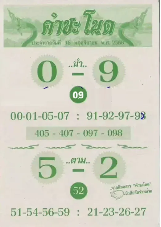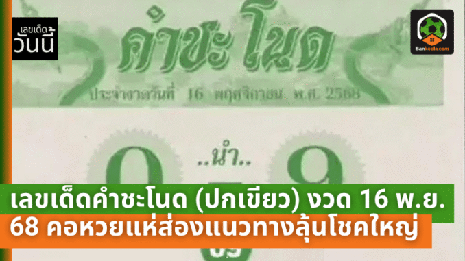 แนวทางหวยบ้านกีฬา งวด 16 พฤศจิกายน 2568 (คำชะโนด ปกเขียว)