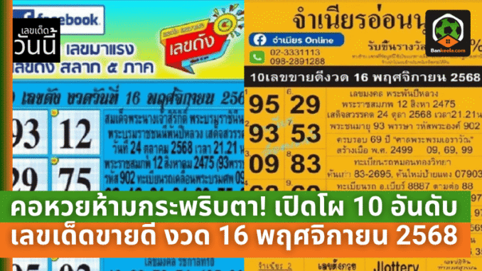 คอหวยห้ามกระพริบตา! เปิดโผ 10 อันดับเลขเด็ดขายดี งวด 16 พฤศจิกายน 2568 ของมันต้องดูก่อนหวยออก!