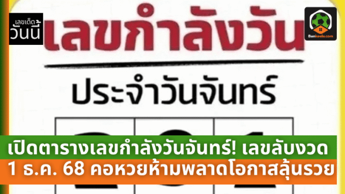 เปิดตารางเลขกำลังวันจันทร์! เลขลับงวด 1 ธ.ค. 68 คอหวยห้ามพลาดโอกาสลุ้นรวย