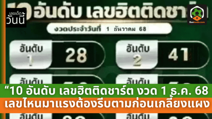 แตกตื่นทั้งวงการคอหวย! “10 อันดับ เลขฮิตติดชาร์ต งวด 1 ธ.ค. 68” เลขไหนมาแรงต้องรีบตาม ก่อนเกลี้ยงแผงจริง!