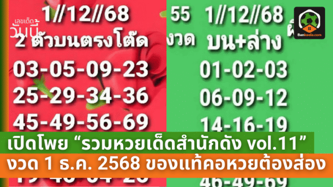 คอหวยเตรียมตัวลุ้นกันแบบสุดแรง งวด 1 ธันวาคม 2568 มาถึงช่วงโค้งสุดท้ายแล้ว และโพยเด็ดที่หลายคนรอคอยอย่าง “รวมหวยเด็ดสำนักดัง vol.11” ก็ปล่อยแนวทางออกมาเป็นที่เรียบร้อย งานนี้บอกเลยว่าเลขสวย ตัวเด่นทั้งบน-ล่างมาแบบไม่มีกั๊ก ใครที่ติดตามผลงานเจ้านี้มาตลอดรู้ดีว่าของเขาแม่นจริง และอาจเป็นกุญแจสำคัญให้คุณคว้ารางวัลใหญ่แบบไม่รู้ตัว