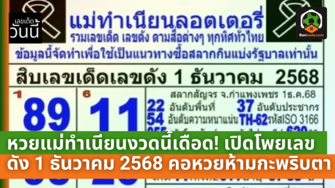 หวยแม่ทำเนียนงวดนี้เดือด! เปิดโพยเลขดัง 1 ธันวาคม 2568 คอหวยห้ามกะพริบตา