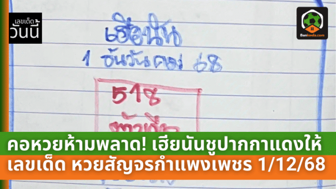 แต่สำหรับนาทีนี้ ถ้าพูดถึงคำว่า แนวทางหวย งวดสัญจรกำแพงเพชร 1/12/68 เลข 97 และ 518 จากเฮียนัน นับว่าเป็นชุดที่ถูกพูดถึงมากที่สุดชุดหนึ่งในกระแสออนไลน์ และกลายเป็นโจทย์หลักให้คอหวยไทยใช้เป็นจุดตั้งต้นก่อนตัดสินใจเดินแผงซื้อสลากกันจริง
