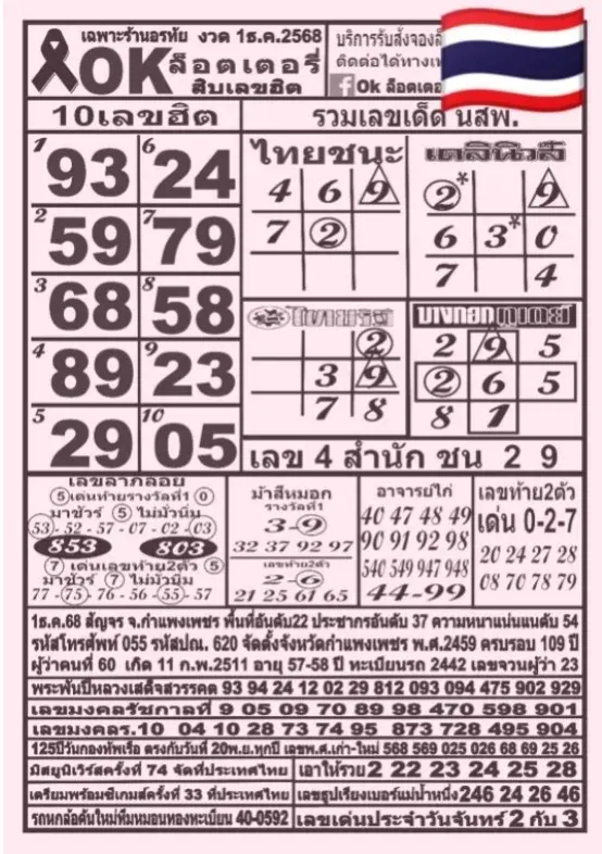 10 เลขฮิต OK ล็อตเตอรี่ งวด 1 ธ.ค. 68 คอหวยห้ามหลับ! รีบส่องก่อนเลขดังเกลี้ยงแผง