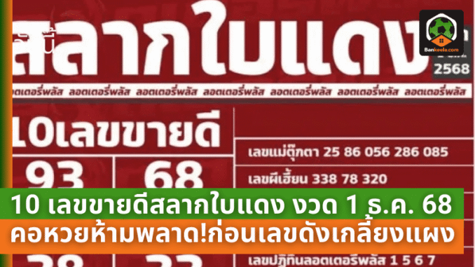 10 เลขขายดีจาก สลากใบแดง งวดวันที่ 1 ธันวาคม 2568 ถูกจับตาอย่างหนักในโค้งสุดท้ายก่อนวันหวยออก คอหวยหลายคนกำลังเร่งเช็กเลขในมือ บางคนยังวิ่งหาลอตเตอรี่เพิ่ม เพราะเชื่อว่ากระแสเลขขายดีนี่แหละ คือหนึ่งในสัญญาณสำคัญของดวงลุ้นรวย ใครที่ยังไม่มีเลขในใจ หรือยังลังเลไม่รู้จะไปทางไหนดี การลองส่องชุดเลขขายดีจากสลากใบแดงก็ถือเป็นอีกหนึ่งมุมมองที่ช่วยประกอบการตัดสินใจได้ไม่เลว