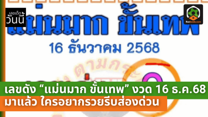 คอหวยห้ามหลุด! เลขดัง “แม่นมาก ขั้นเทพ” งวด 16 ธ.ค. 68 มาแล้ว ใครอยากรวยรีบส่องด่วน