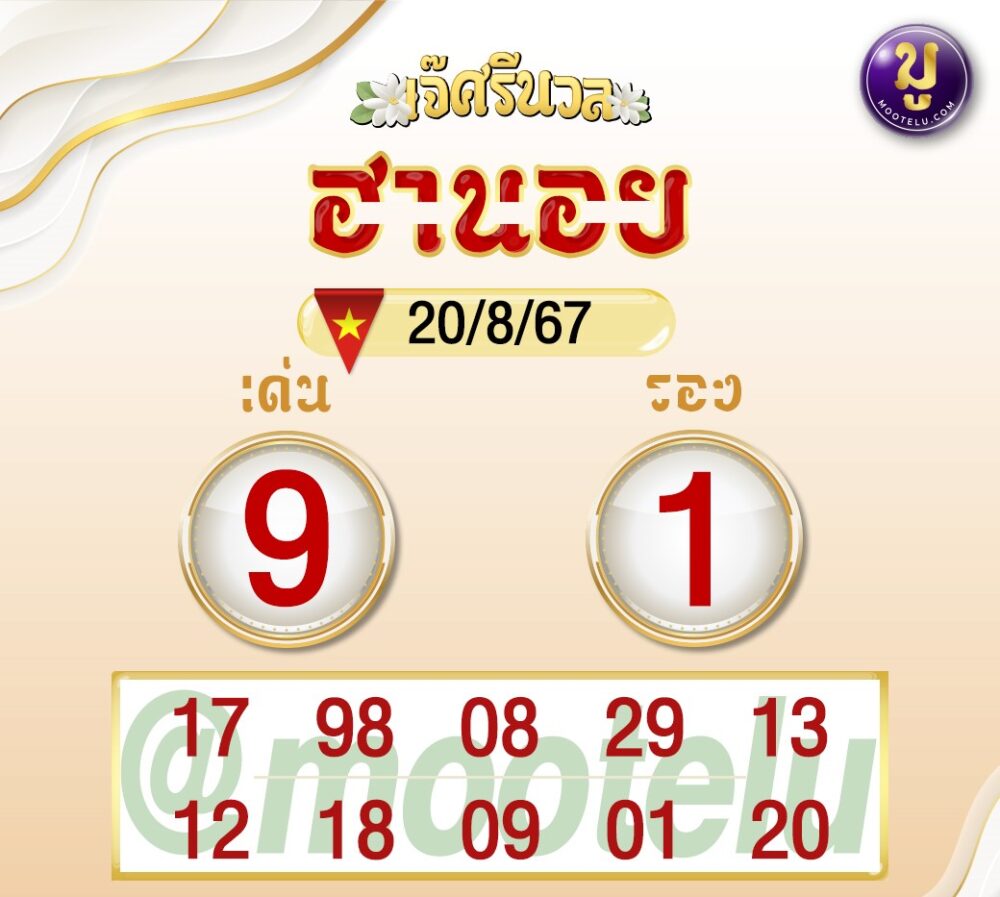 - เลขสองตัวบน-ล่าง: 17, 12, 98, 08, 09, 29, 01, 13, 20, 18