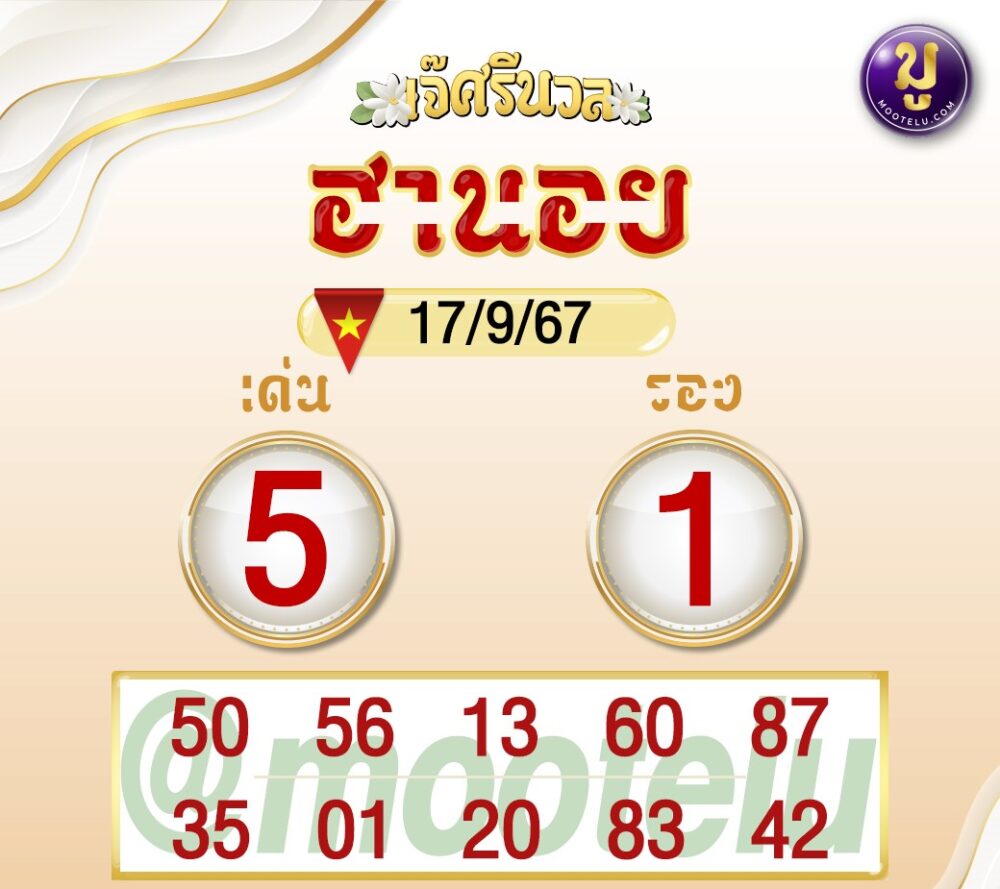 เจ๊ศรีนวล ขนเอาเลขเด่น 5 และรอง 1 มาฝากคอหวยทุกท่าน ซึ่งตัวเลขเหล่านี้มาแรงมากในงวดนี้ เลขชุดอย่าง 50, 56, และ 87 ถือเป็นเลขที่น่าสนใจ หากใครยังไม่รู้จะเลือกเลขไหน ลองพิจารณาเลขจากสำนักนี้ได้เลย