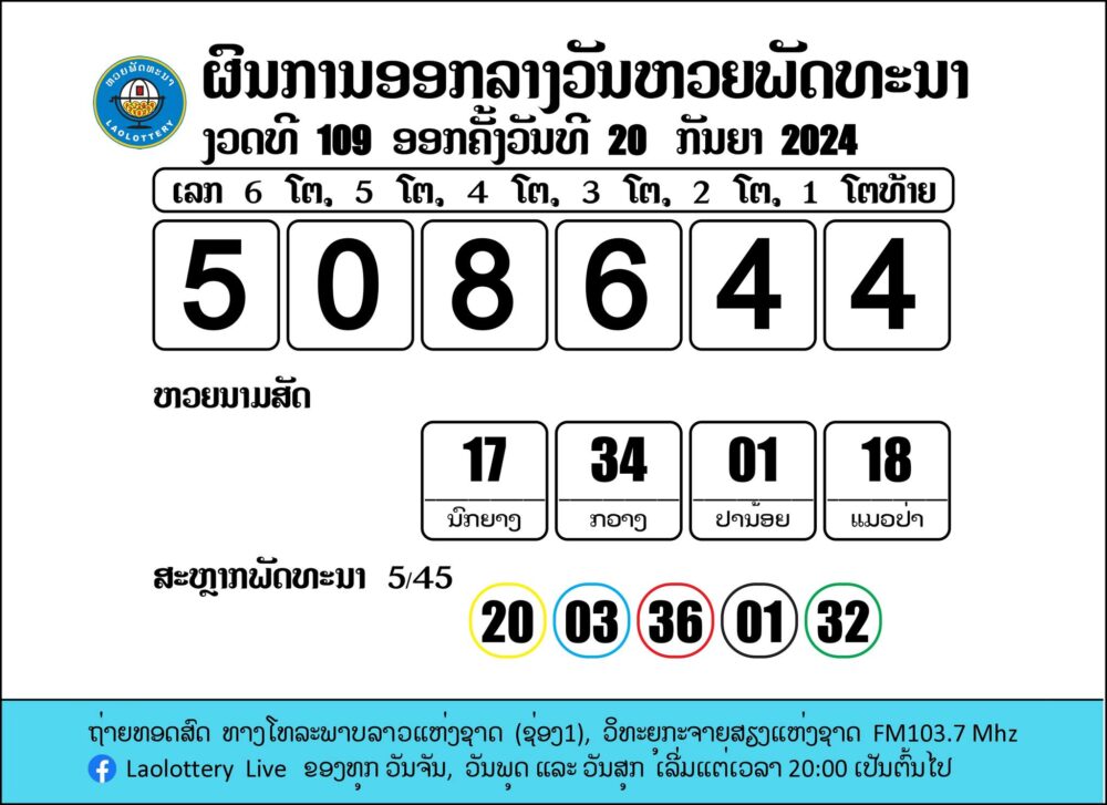 ຖ່າຍທອດສົດການອອກເລກລາງວັນຫວຍພັດທະນາ 20/09/2024