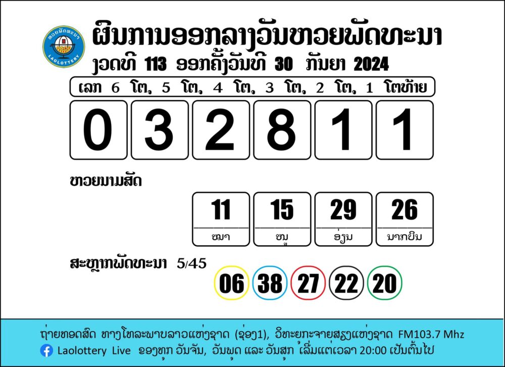 ຖ່າຍທອດສົດການອອກເລກລາງວັນຫວຍພັດທະນາ 30/09/2024
