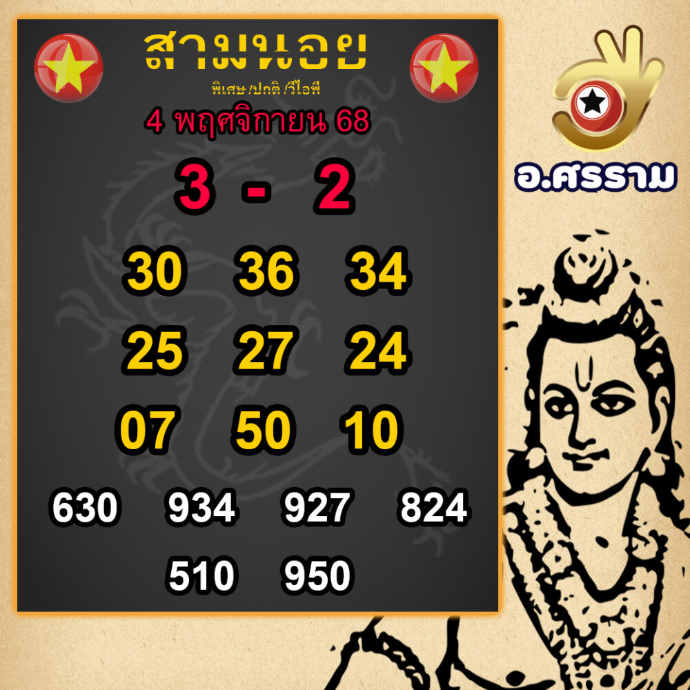- เลขสามตัวน่าลุ้น: 860 – 511 – 538 – 630 – 178