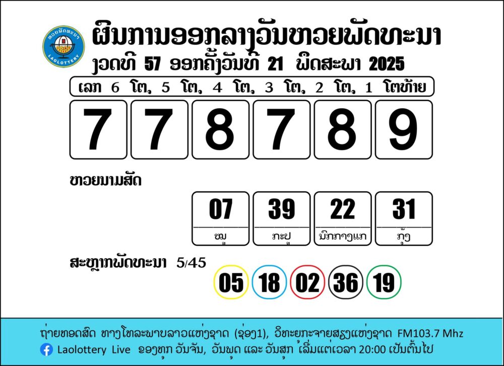 ຖ່າຍທອດສົດການອອກເລກລາງວັນຫວຍພັດທະນາ 21/5/2025