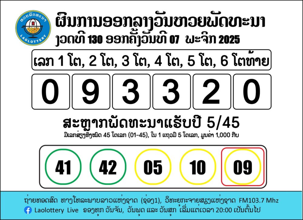 ຖ່າຍທອດສົດການອອກເລກລາງວັນຫວຍພັດທະນາ 7/11/2025